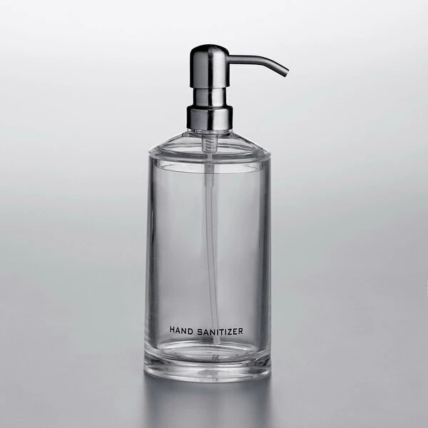 American Metalcraft DPPR20 20 Oz. Clear Plastic Round Refillable Hand Sanitizer Dispenser With Silkscreen And Stainless Steel Pump