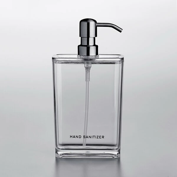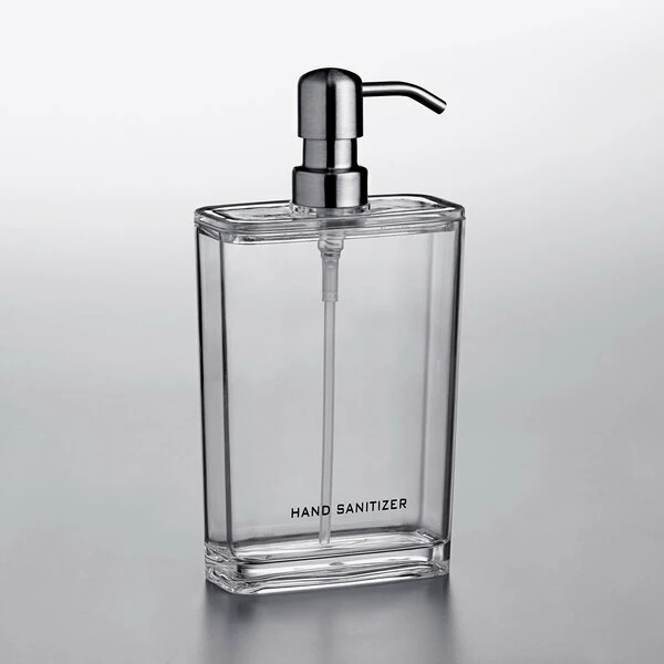 American Metalcraft DPRC17 17 Oz. Clear Plastic Rectangular Refillable Hand Sanitizer Dispenser With Silkscreen And Stainless Steel Pump