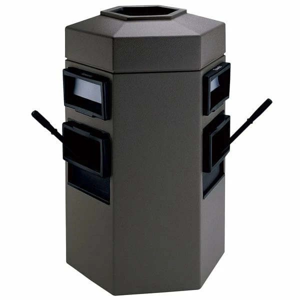 Commercial Zone 755424 35 Gallon Islander Series Gray Bermuda 2 Hexagonal Waste Container With 2 Paper Towel Dispensers And 2 Windshield Wash Stations