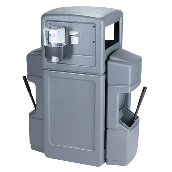 Commercial Zone 757103 Islander Series Aruba-6 42 Gallon Gray Rectangular Double-Sided Waste / Windshield Service Center With 2 Paper Towel Dispensers, 2 Squeegees, 2 Wash Stations, And 2 Glove Dispensers