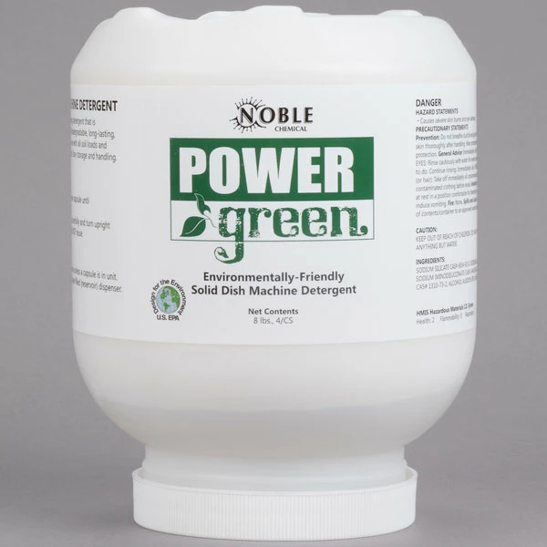 Noble Chemical 8 Lb. / 128 Oz. Power Green Environmentally Friendly Solid Dish Machine Detergent – 4/Case