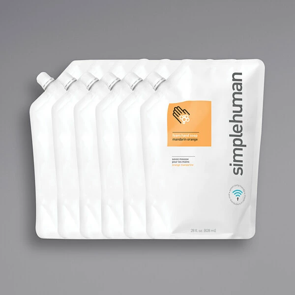 Simplehuman CT1078 28 Fl. Oz. Mandarin Orange Scented Foam Hand Soap Refill Pouch – 6/Case